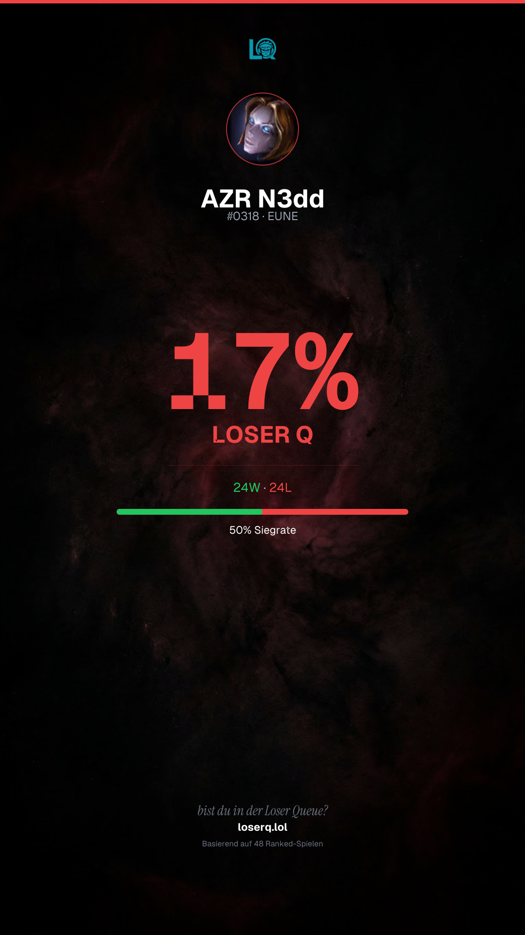 24 Siege, 24 Niederlagen — eine Winrate von 50%.