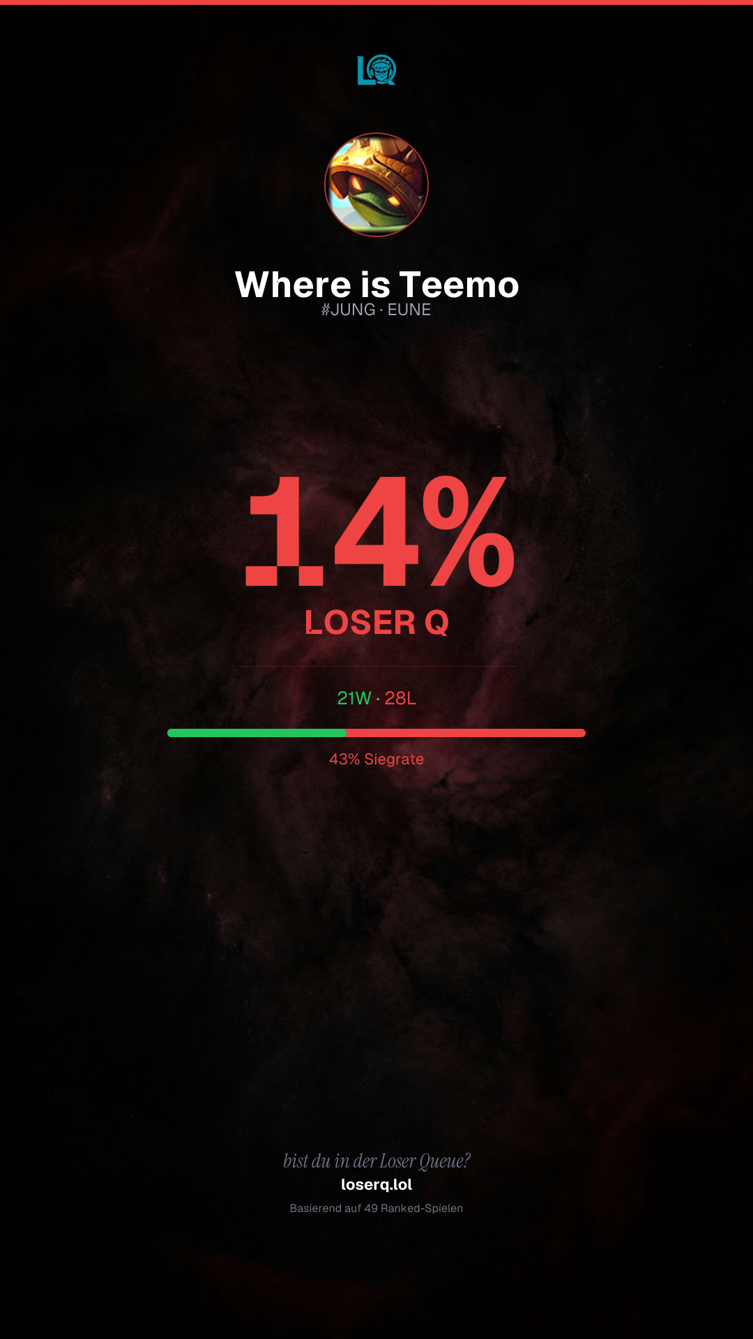 21 Siege, 28 Niederlagen — eine Winrate von 42%. Eine harte Phase.