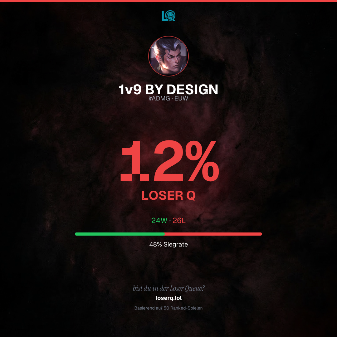 24 Siege, 26 Niederlagen — eine Winrate von 48%.