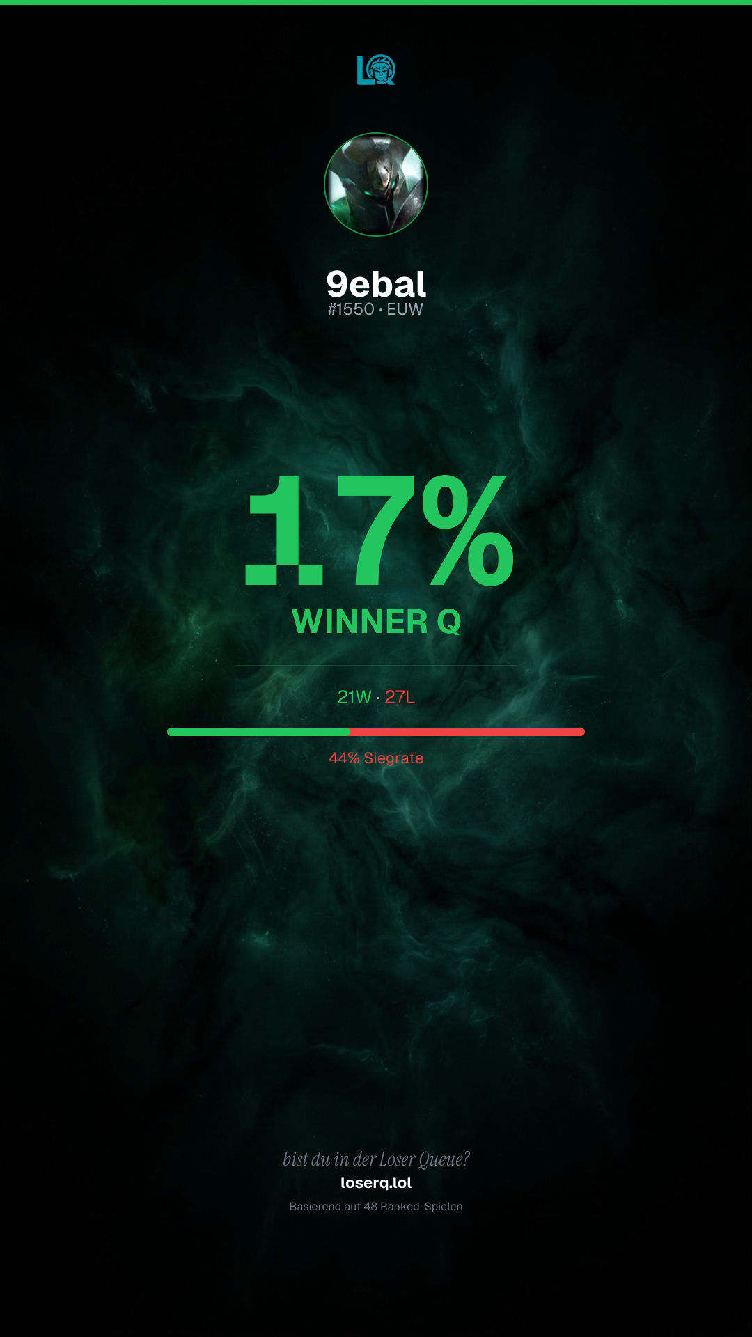 21 Siege, 27 Niederlagen — eine Winrate von 43%. Eine harte Phase.