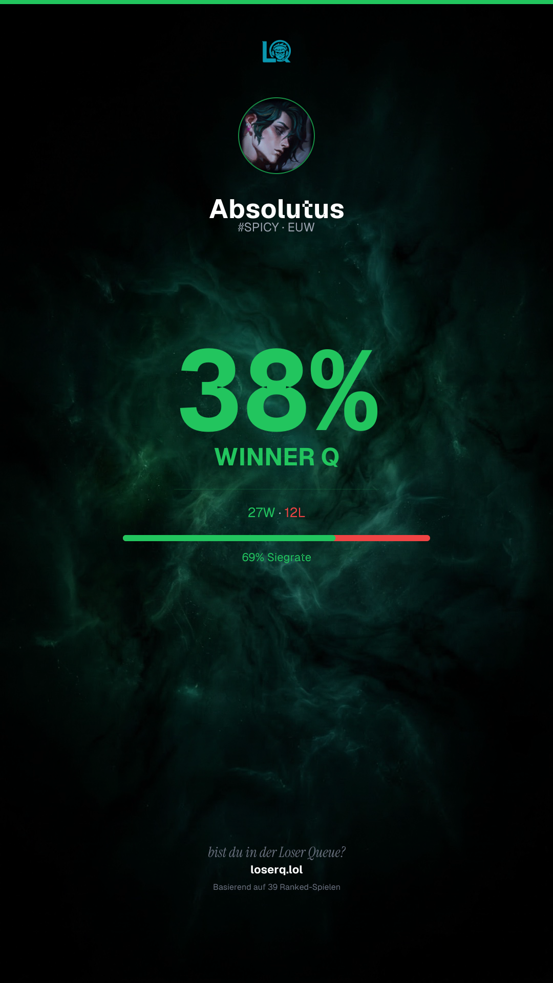 27W / 12L · 🔥 7 Siege in Folge
