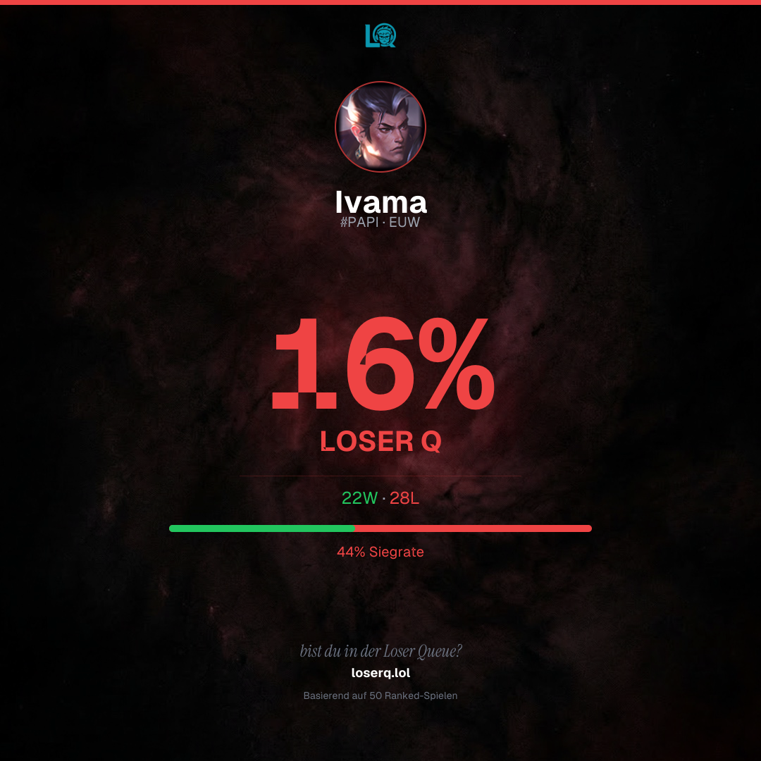 22 Siege, 28 Niederlagen — eine Winrate von 44%. Eine harte Phase.
