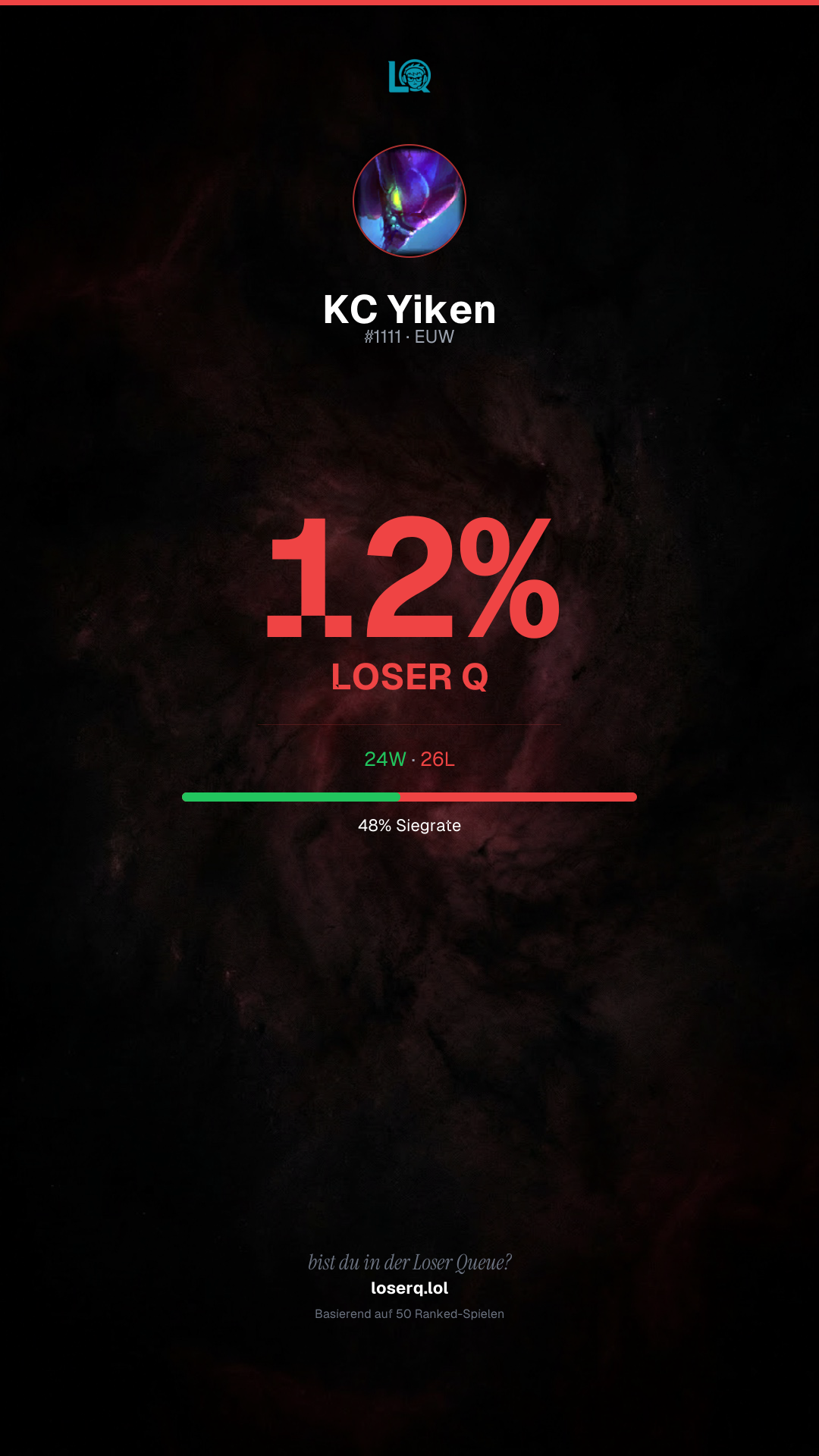 24 Siege, 26 Niederlagen — eine Winrate von 48%.