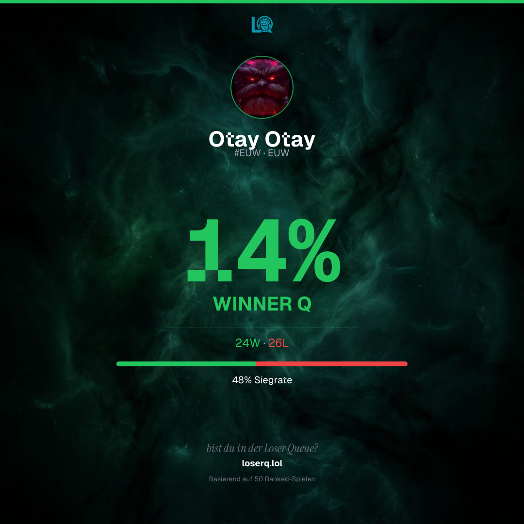 24 Siege, 26 Niederlagen — eine Winrate von 48%.
