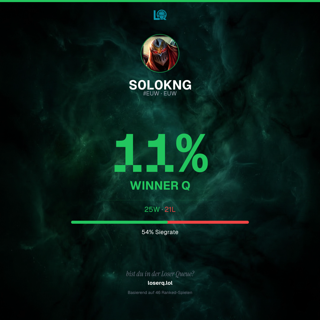 25 Siege, 21 Niederlagen — eine Winrate von 54%.