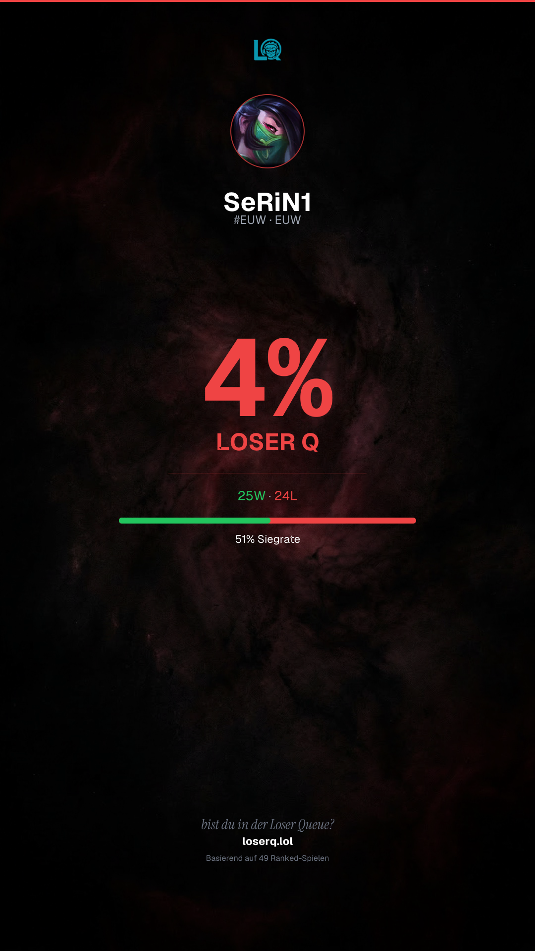 25 Siege, 24 Niederlagen — eine Winrate von 51%.