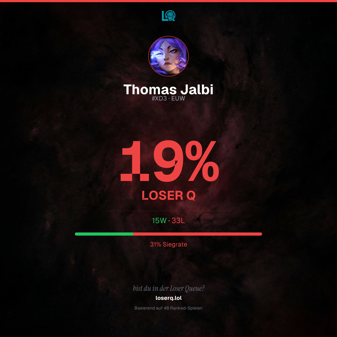 15 Siege, 33 Niederlagen — eine Winrate von 31%. Eine harte Phase.