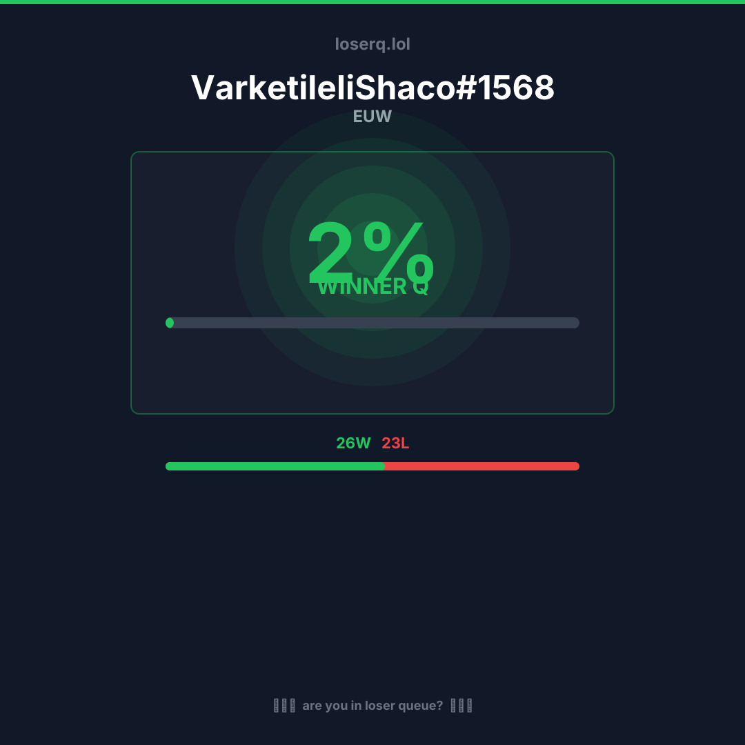 26 Siege, 23 Niederlagen — eine Winrate von 53%.