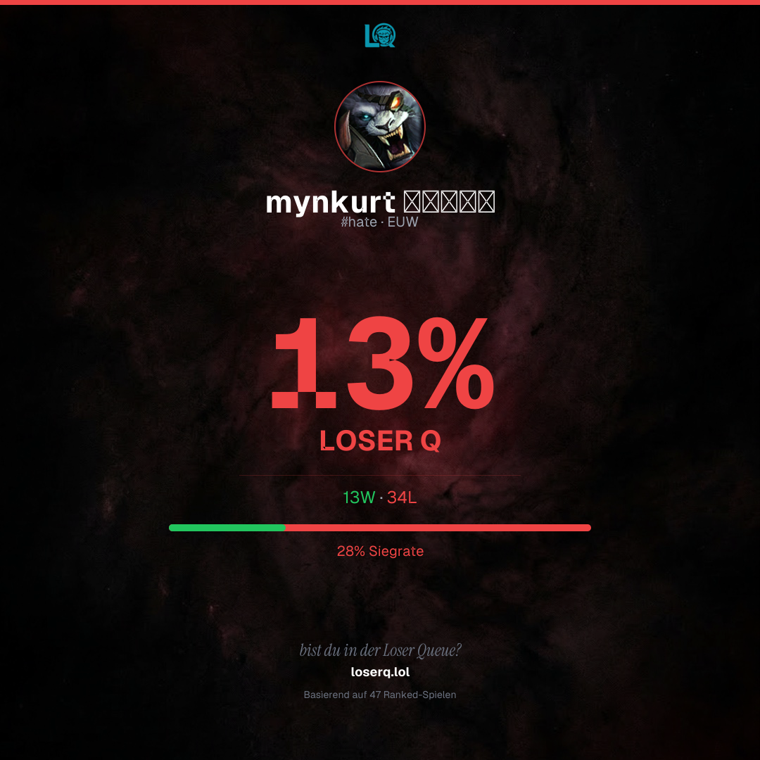 13 Siege, 34 Niederlagen — eine Winrate von 27%. Eine harte Phase.
