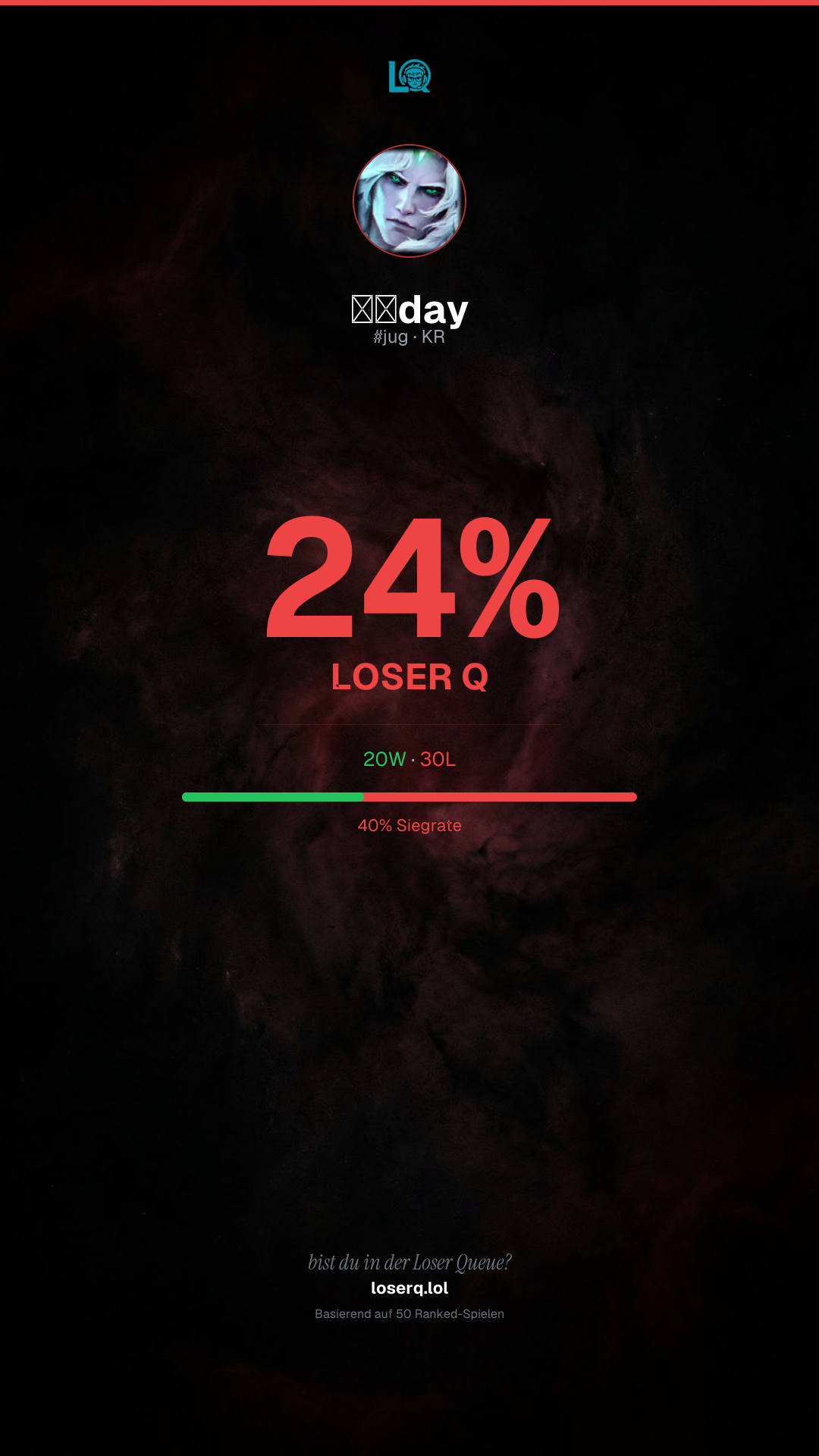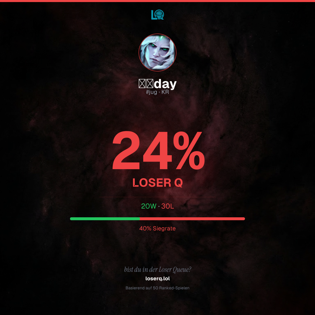 20 Siege, 30 Niederlagen — eine Winrate von 40%. Eine harte Phase.