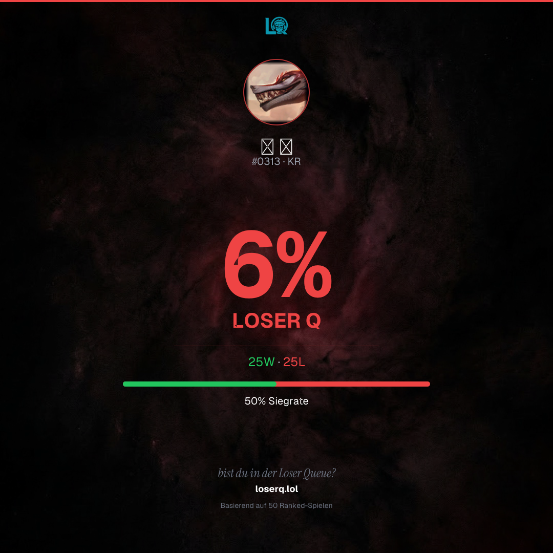 25 Siege, 25 Niederlagen — eine Winrate von 50%.