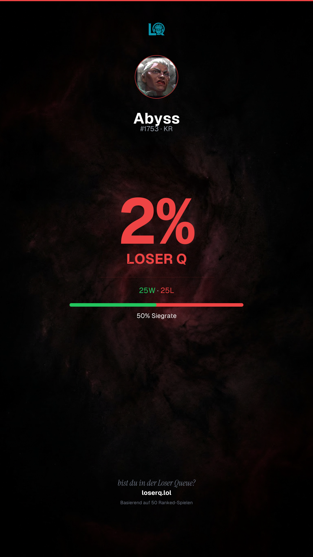 25 Siege, 25 Niederlagen — eine Winrate von 50%.