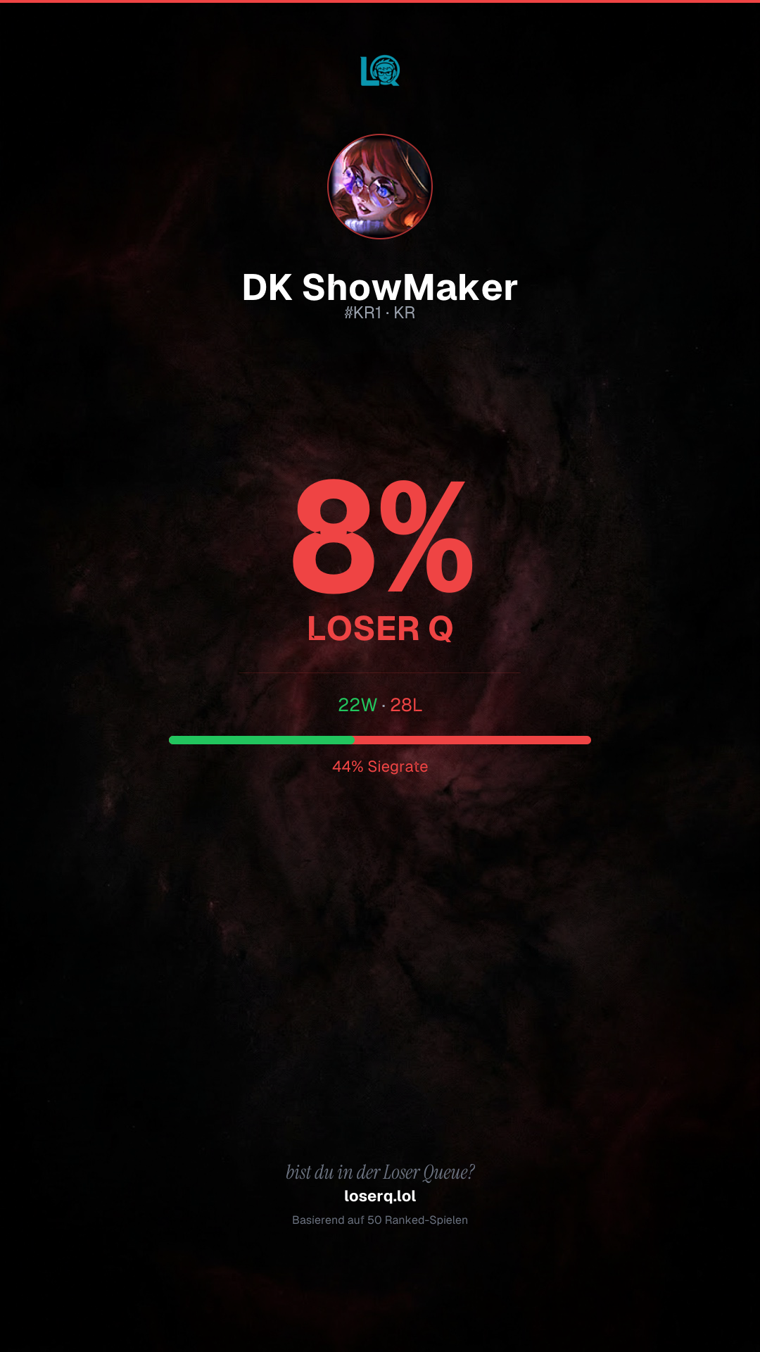 22W / 28L · 💀 3 Niederlagen in Folge