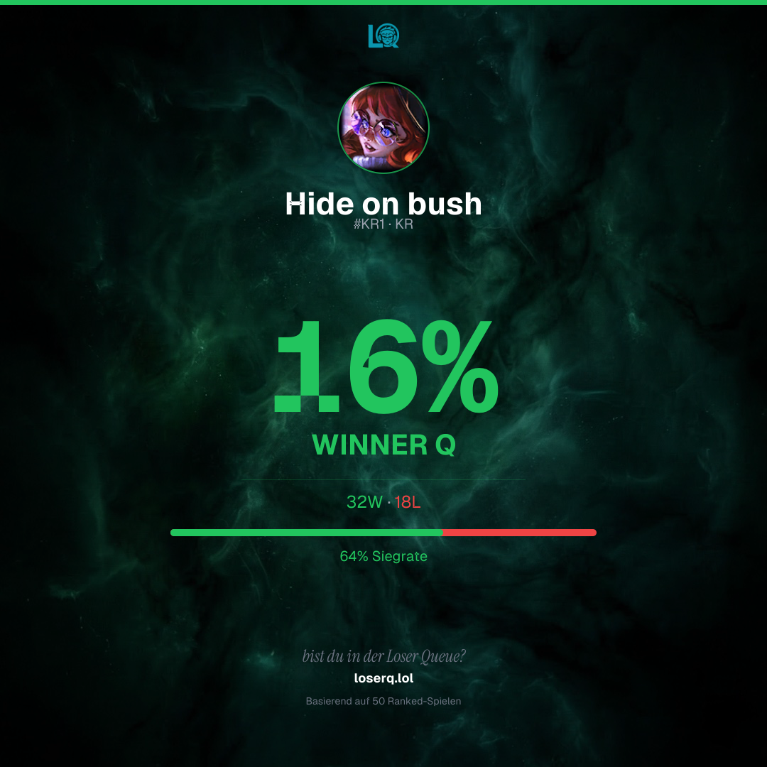 32 Siege, 18 Niederlagen — eine Winrate von 64%. Starke Leistung.