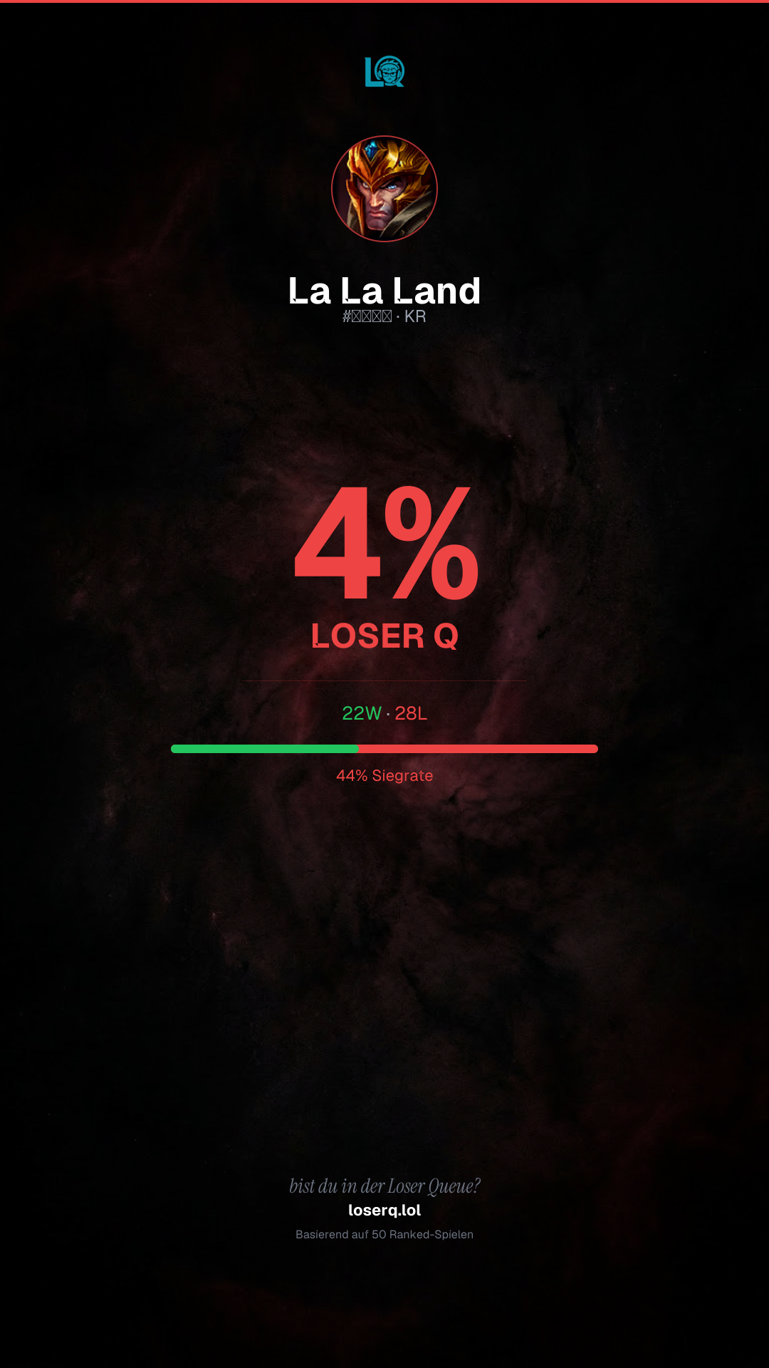 22 Siege, 28 Niederlagen — eine Winrate von 44%. Eine harte Phase.