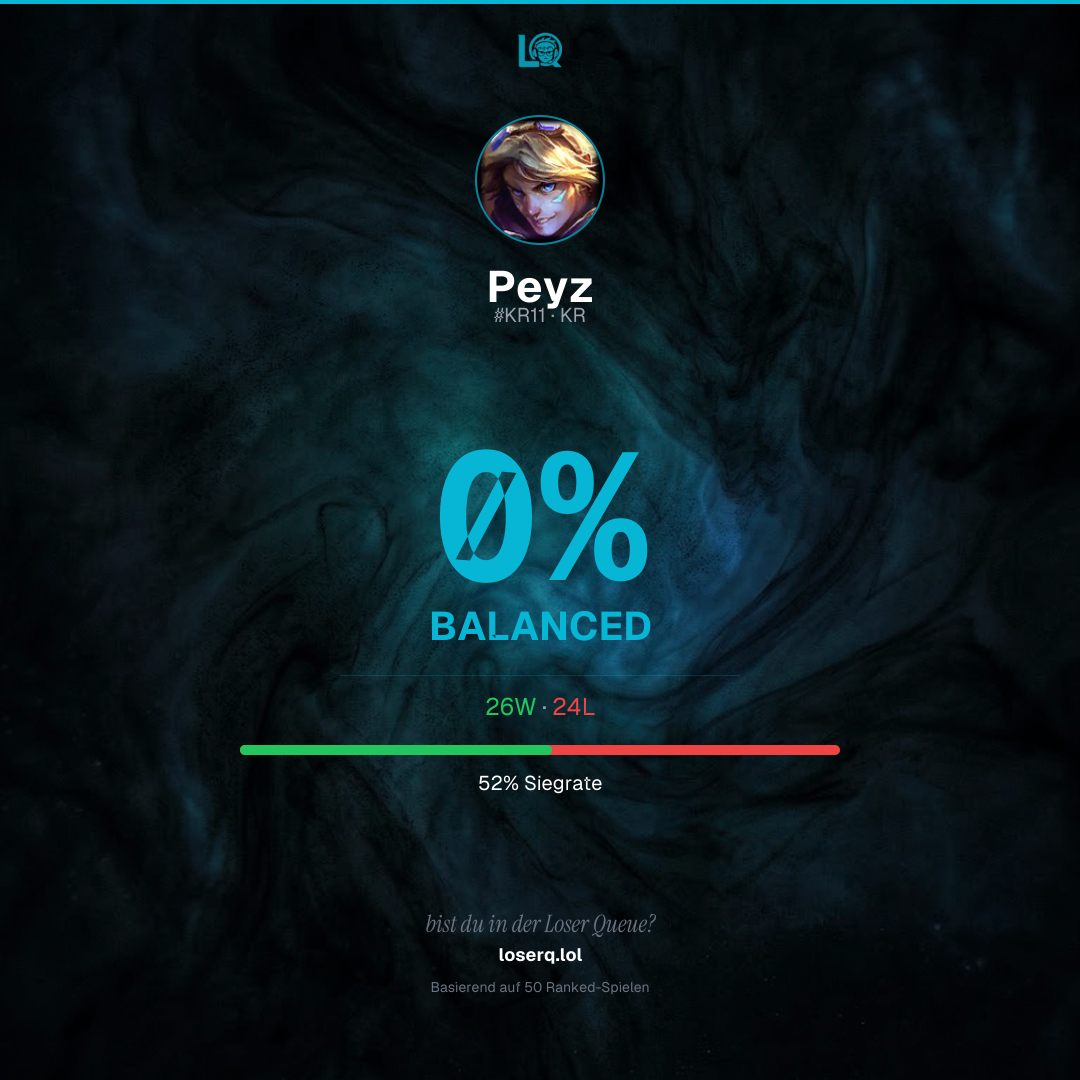 26 Siege, 24 Niederlagen — eine Winrate von 52%.
