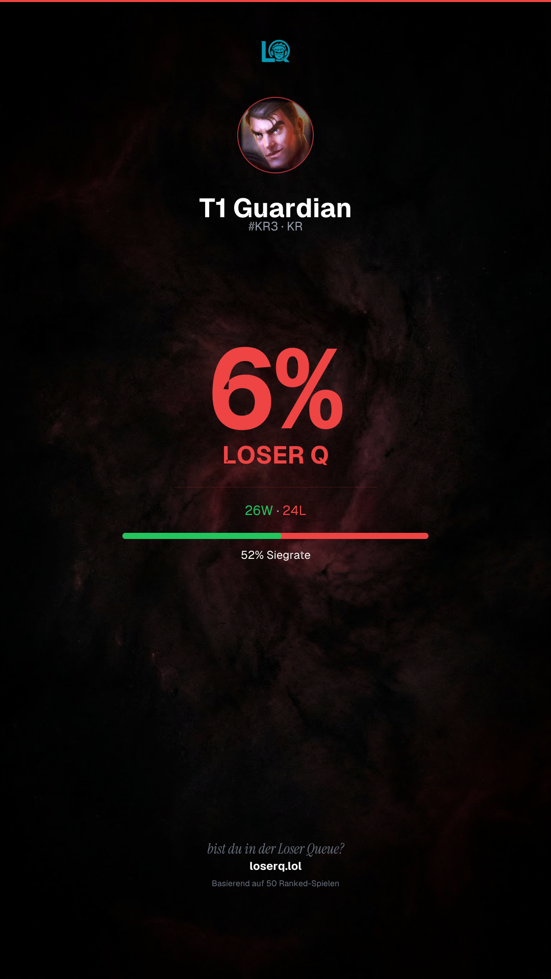 26 Siege, 24 Niederlagen — eine Winrate von 52%.