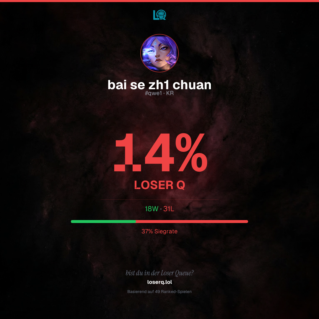 18 Siege, 31 Niederlagen — eine Winrate von 36%. Eine harte Phase.