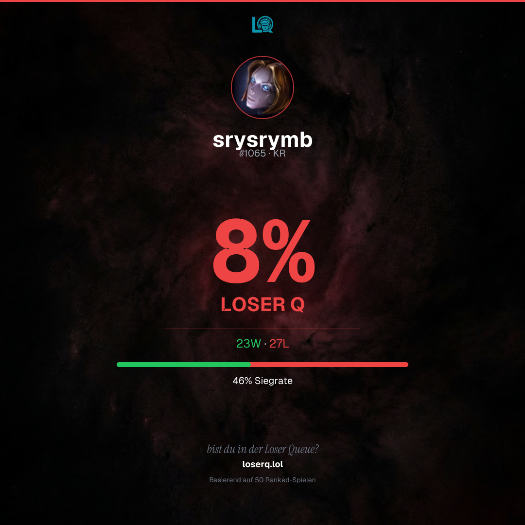 23 Siege, 27 Niederlagen — eine Winrate von 46%.