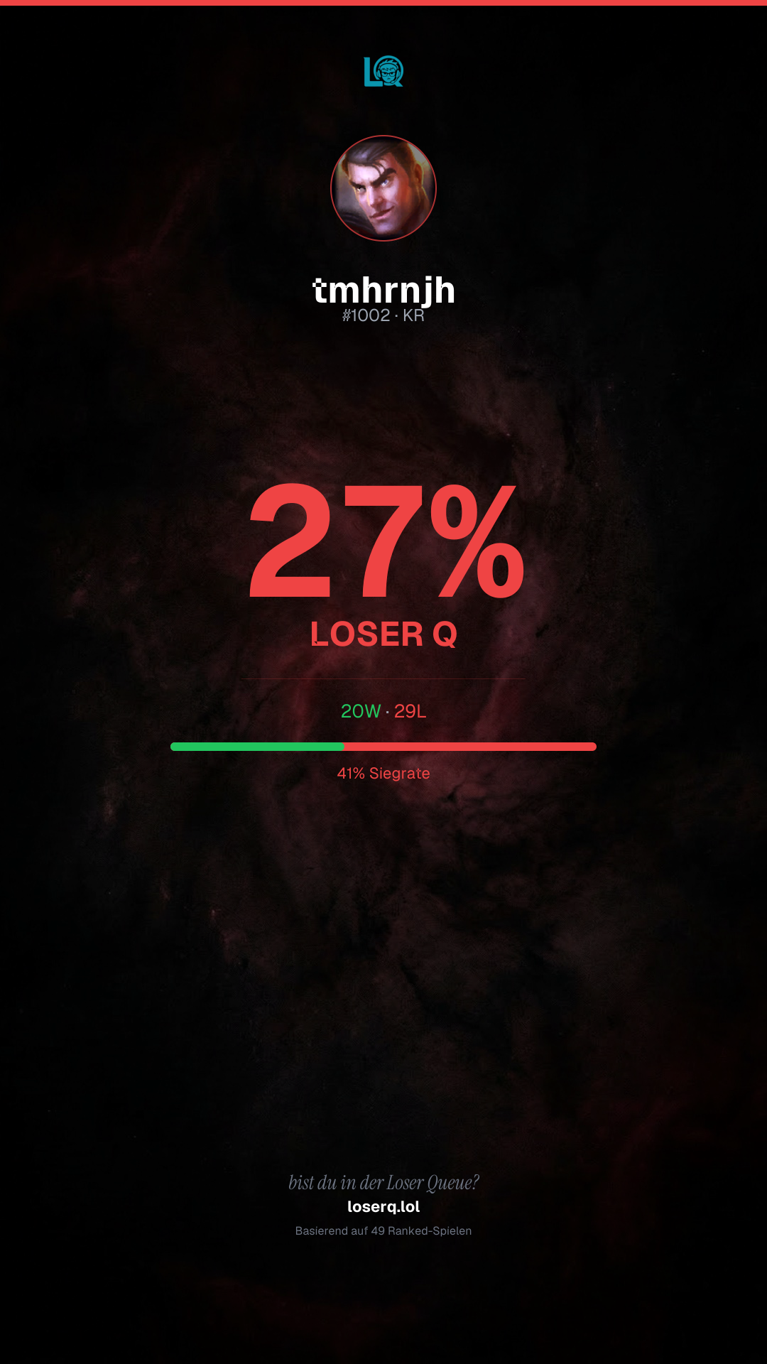 20 Siege, 29 Niederlagen — eine Winrate von 40%. Eine harte Phase.