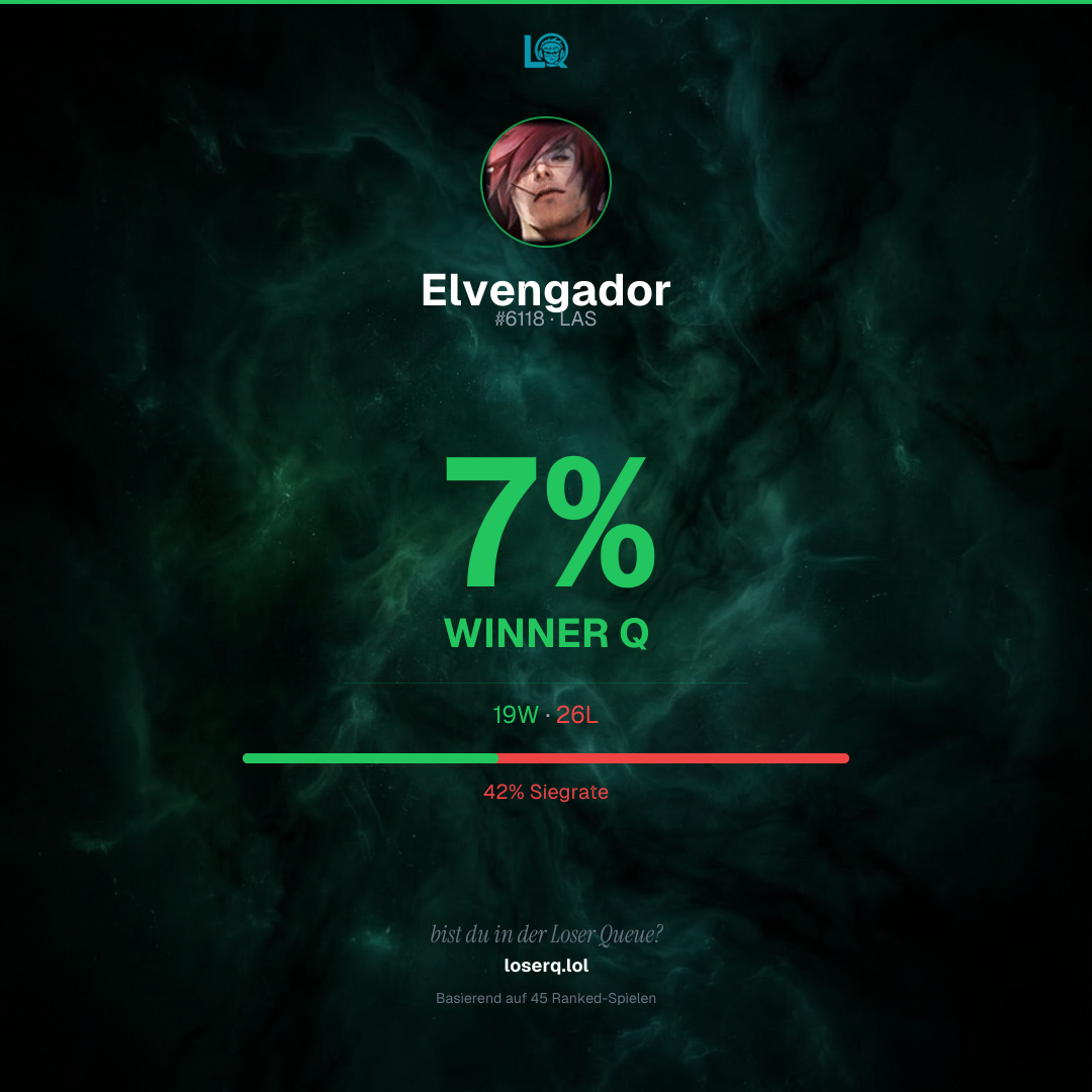 19 Siege, 26 Niederlagen — eine Winrate von 42%. Eine harte Phase.