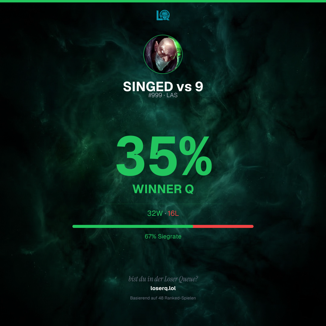 32 Siege, 16 Niederlagen — eine Winrate von 66%. Starke Leistung.