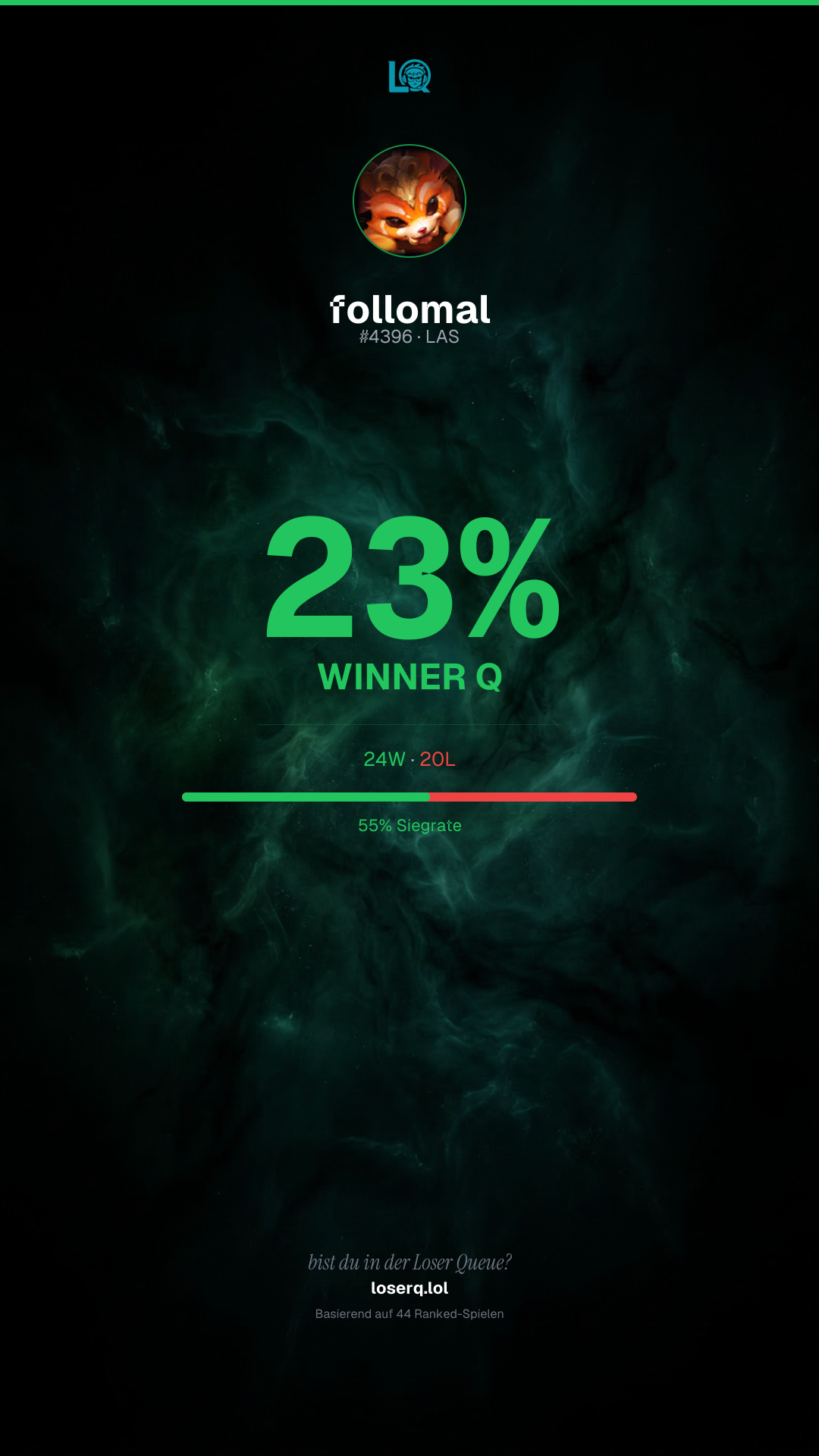24 Siege, 20 Niederlagen — eine Winrate von 54%.