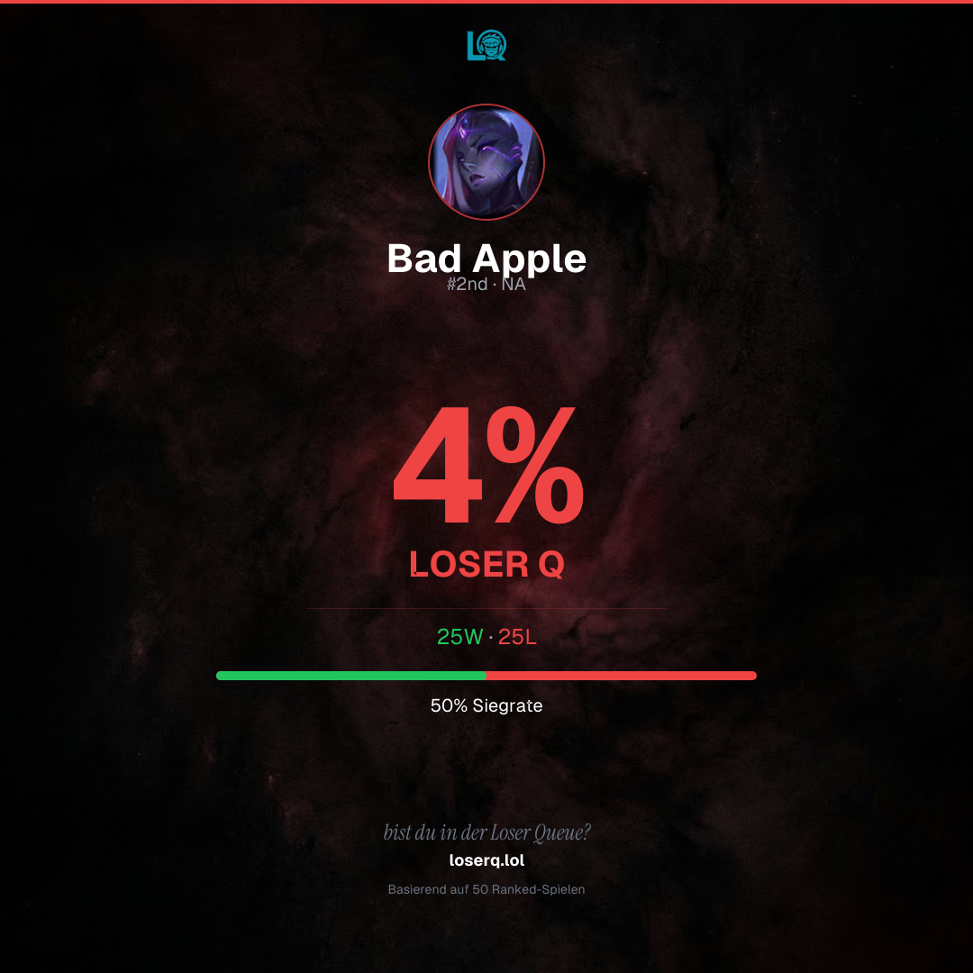 25 Siege, 25 Niederlagen — eine Winrate von 50%.