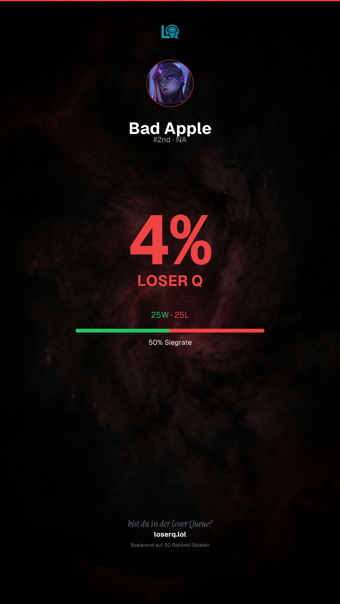 Du bist 4% in der Loser Q — fordere Freunde heraus, ihres zu checken