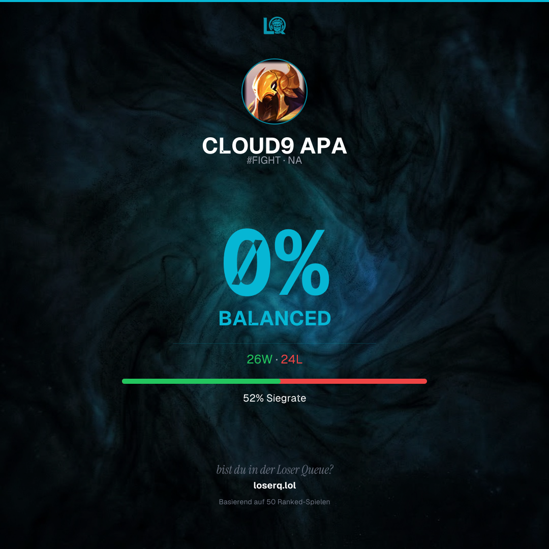 26 Siege, 24 Niederlagen — eine Winrate von 52%.