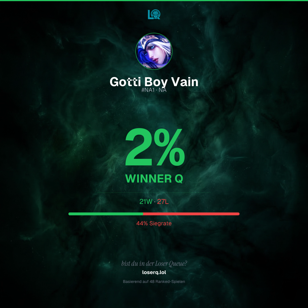 21 Siege, 27 Niederlagen — eine Winrate von 43%. Eine harte Phase.