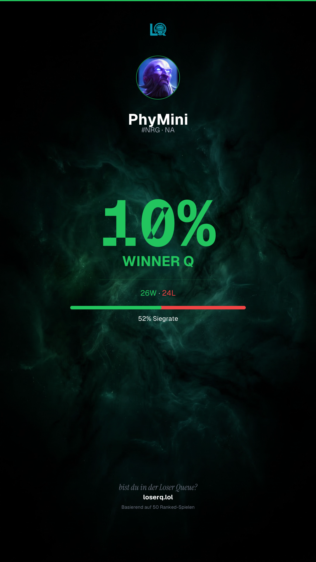 26 Siege, 24 Niederlagen — eine Winrate von 52%.