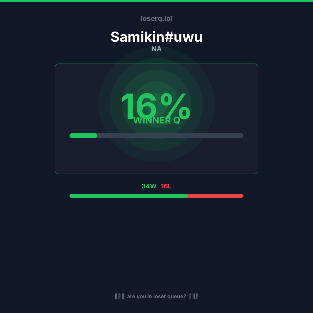 34 Siege, 16 Niederlagen — eine Winrate von 68%. Starke Leistung.