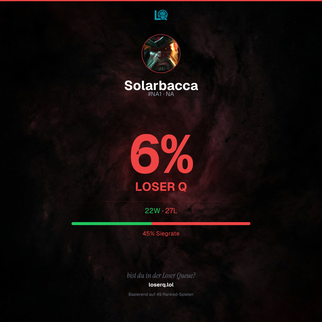 22 Siege, 27 Niederlagen — eine Winrate von 44%. Eine harte Phase.