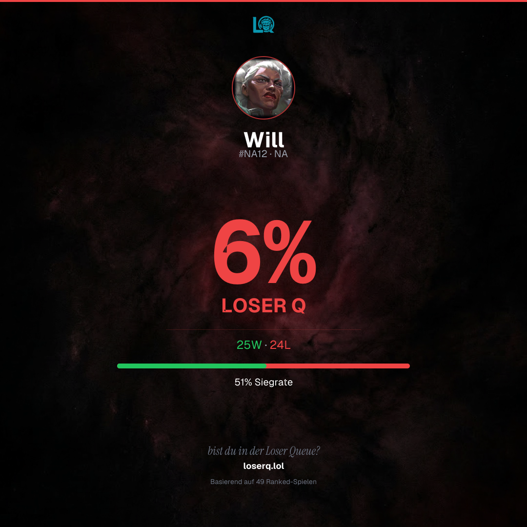 24 Siege, 25 Niederlagen — eine Winrate von 48%.