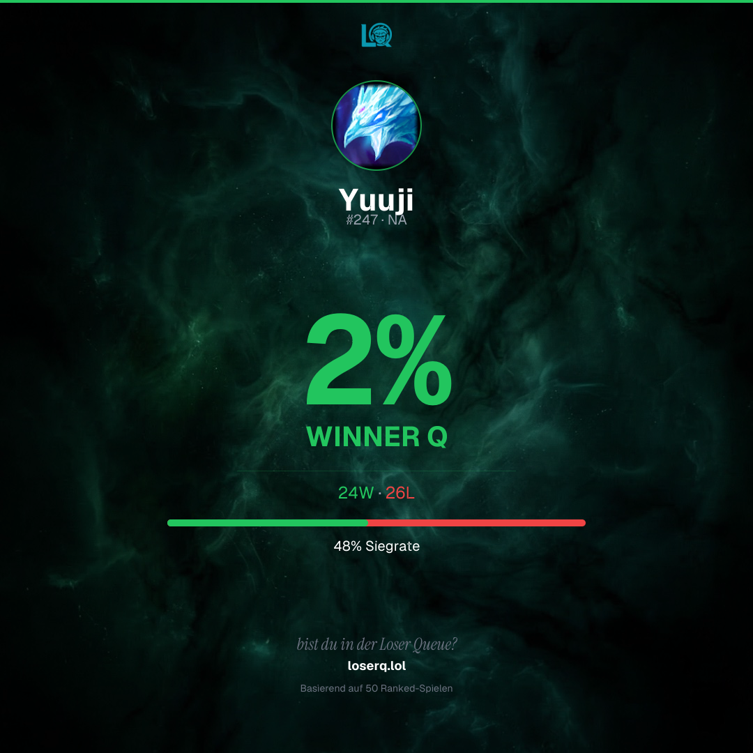24 Siege, 26 Niederlagen — eine Winrate von 48%.