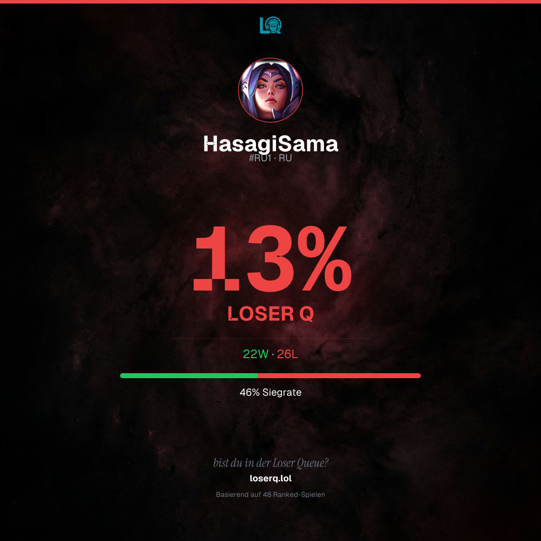 22 Siege, 26 Niederlagen — eine Winrate von 45%. Eine harte Phase.