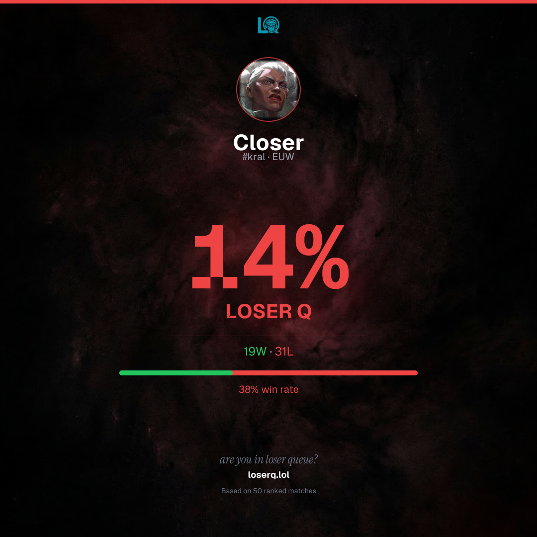 19 wins, 31 losses — a 38% win rate. It's been a rough stretch.