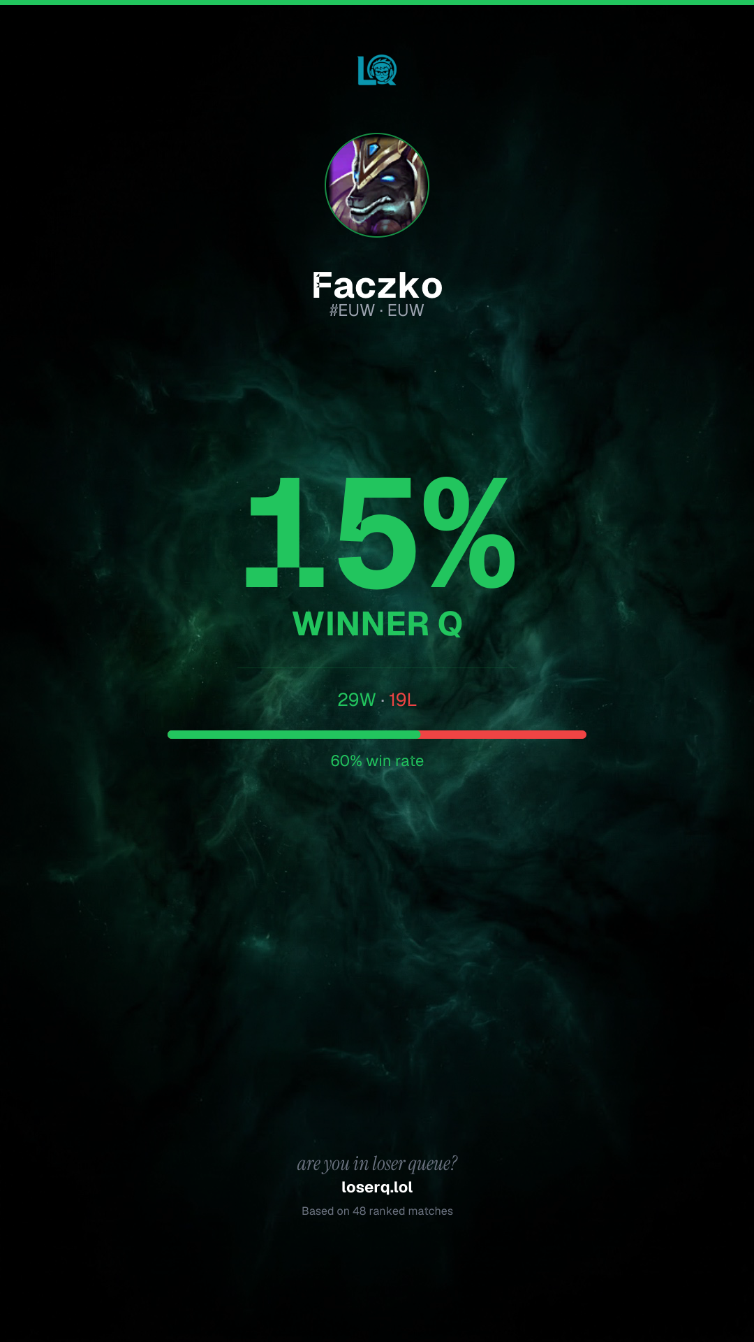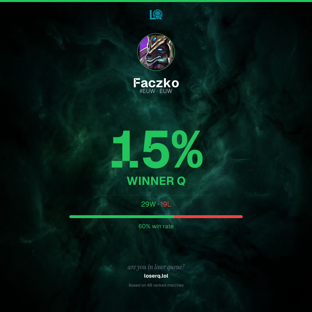 29 wins, 19 losses — a 60% win rate. A strong showing.