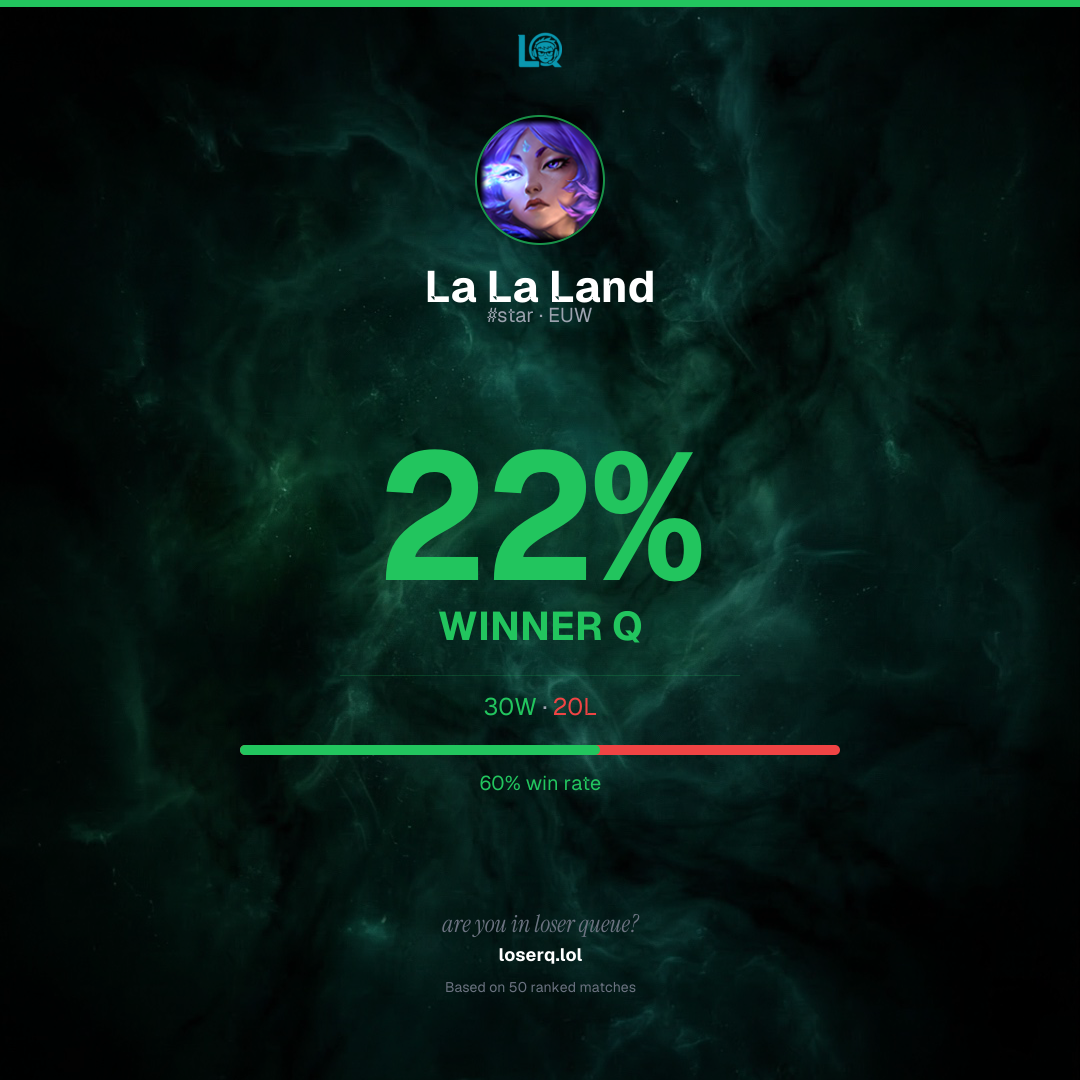 30 wins, 20 losses — a 60% win rate. A strong showing.