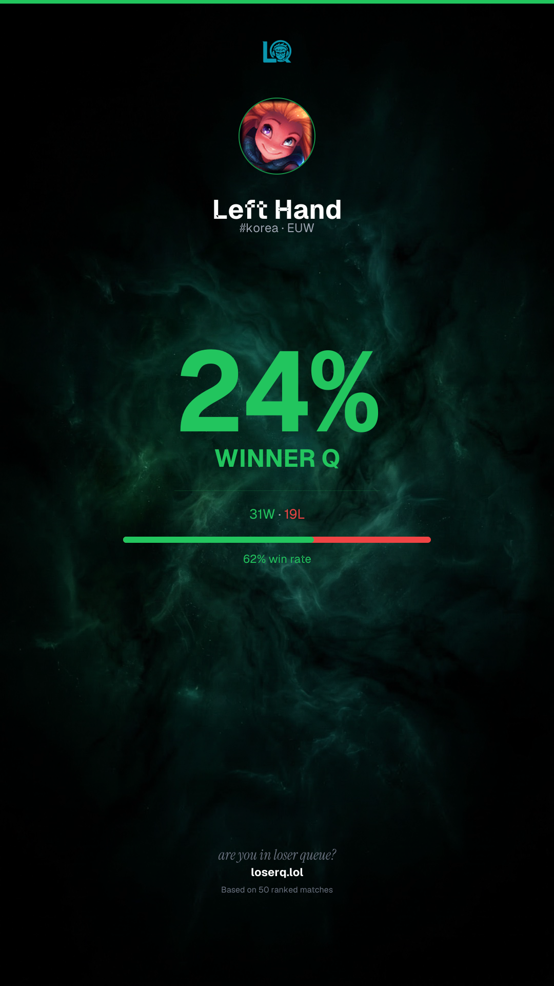 31 wins, 19 losses — a 62% win rate. A strong showing.