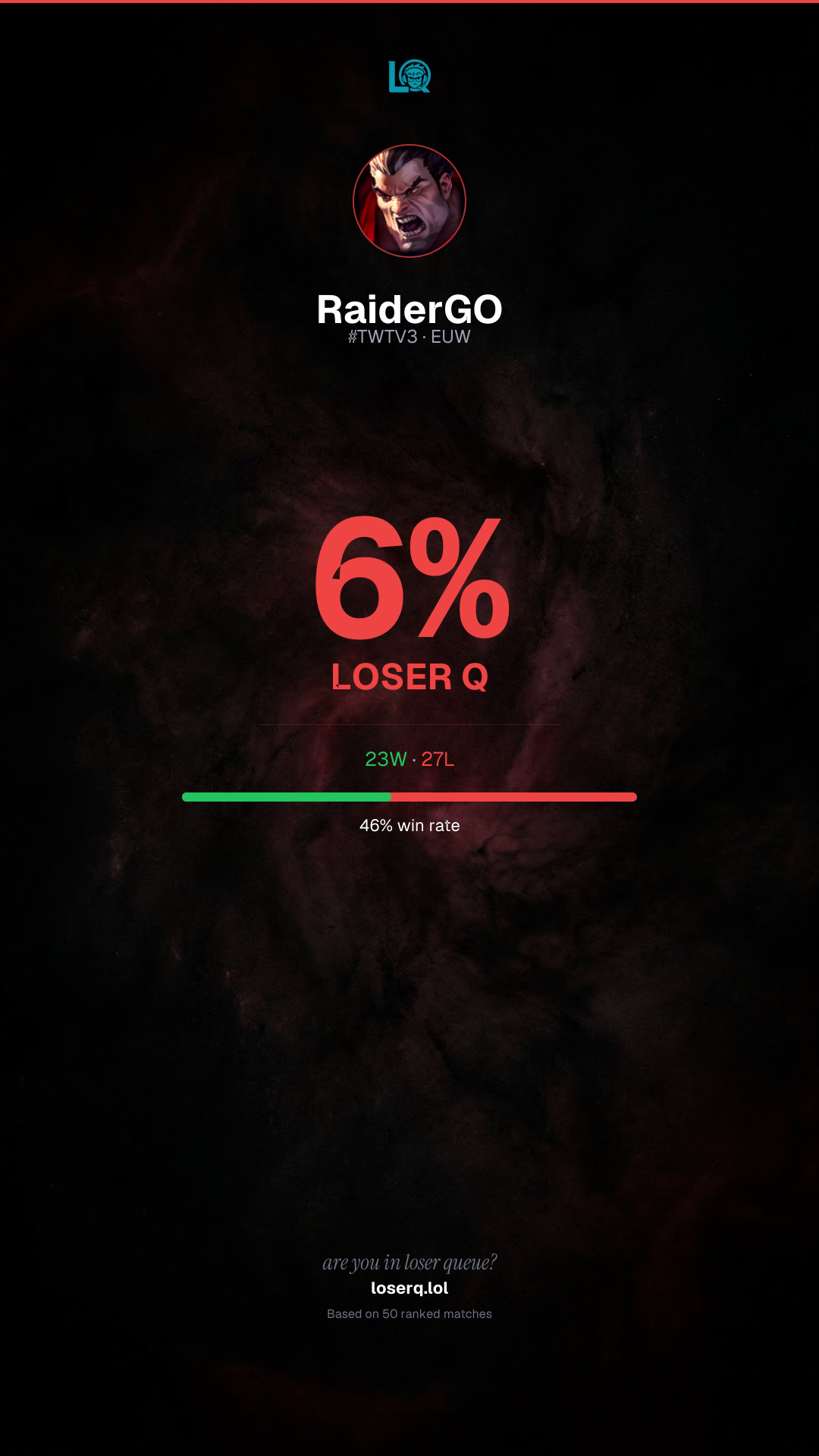 You're 6% in Loser Q — dare them to check theirs
