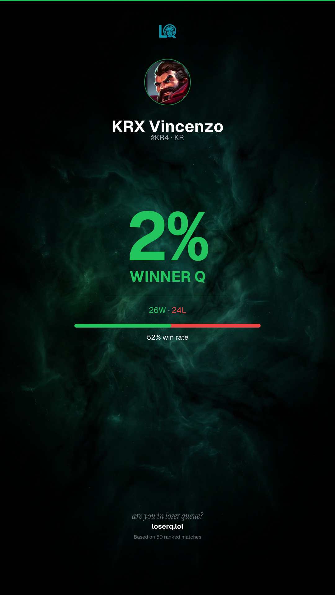 26 wins, 24 losses — a 52% win rate.