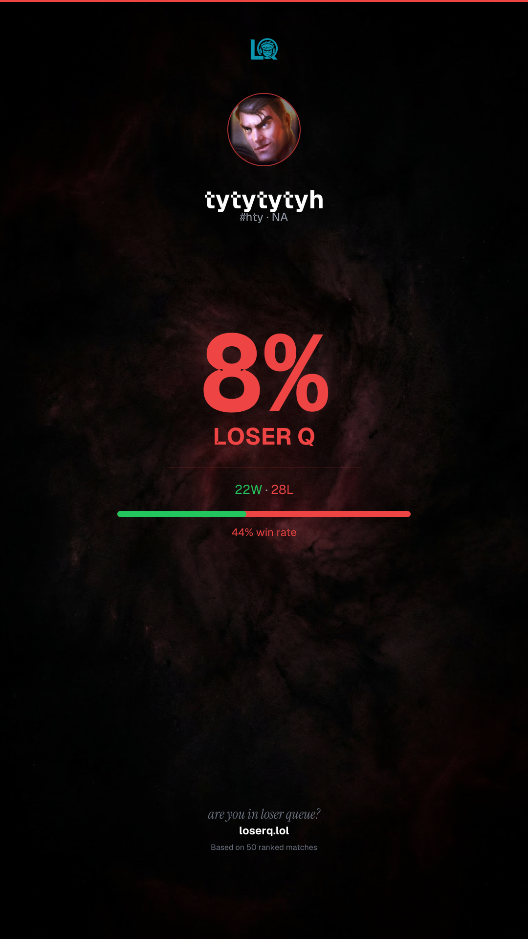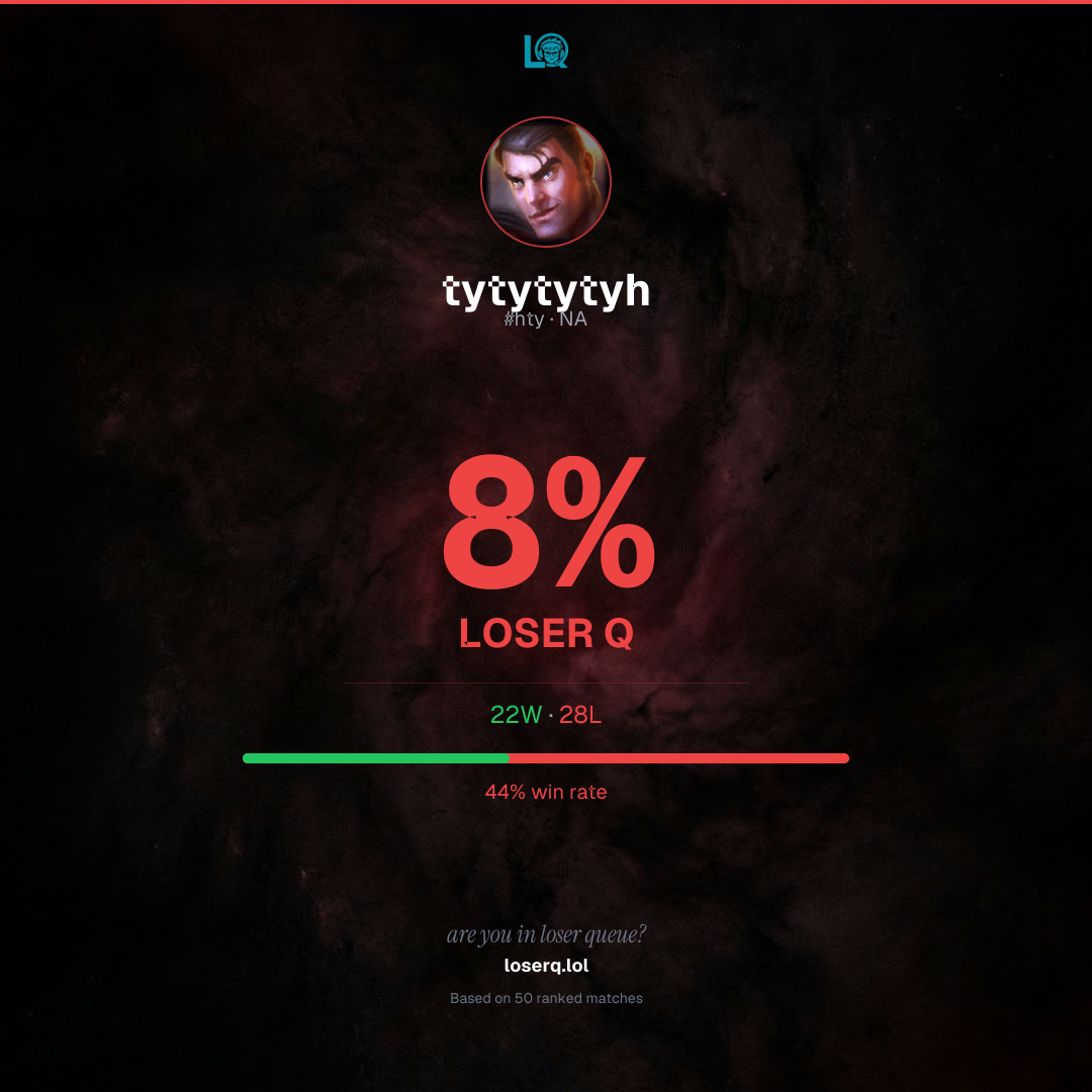 22 wins, 28 losses — a 44% win rate. It's been a rough stretch.