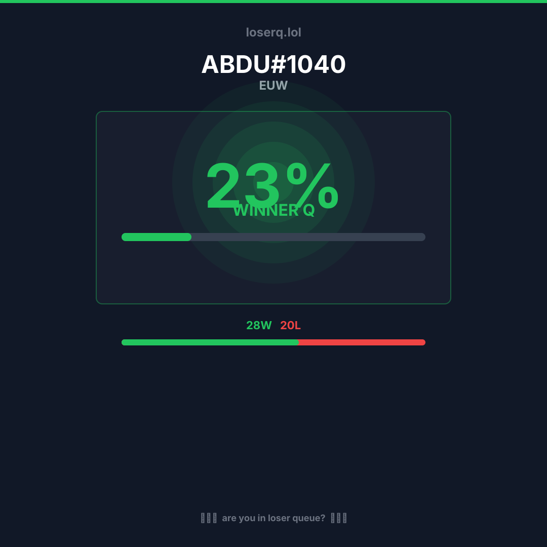 28 victorias, 20 derrotas — 58% de win rate. Un buen desempeño.
