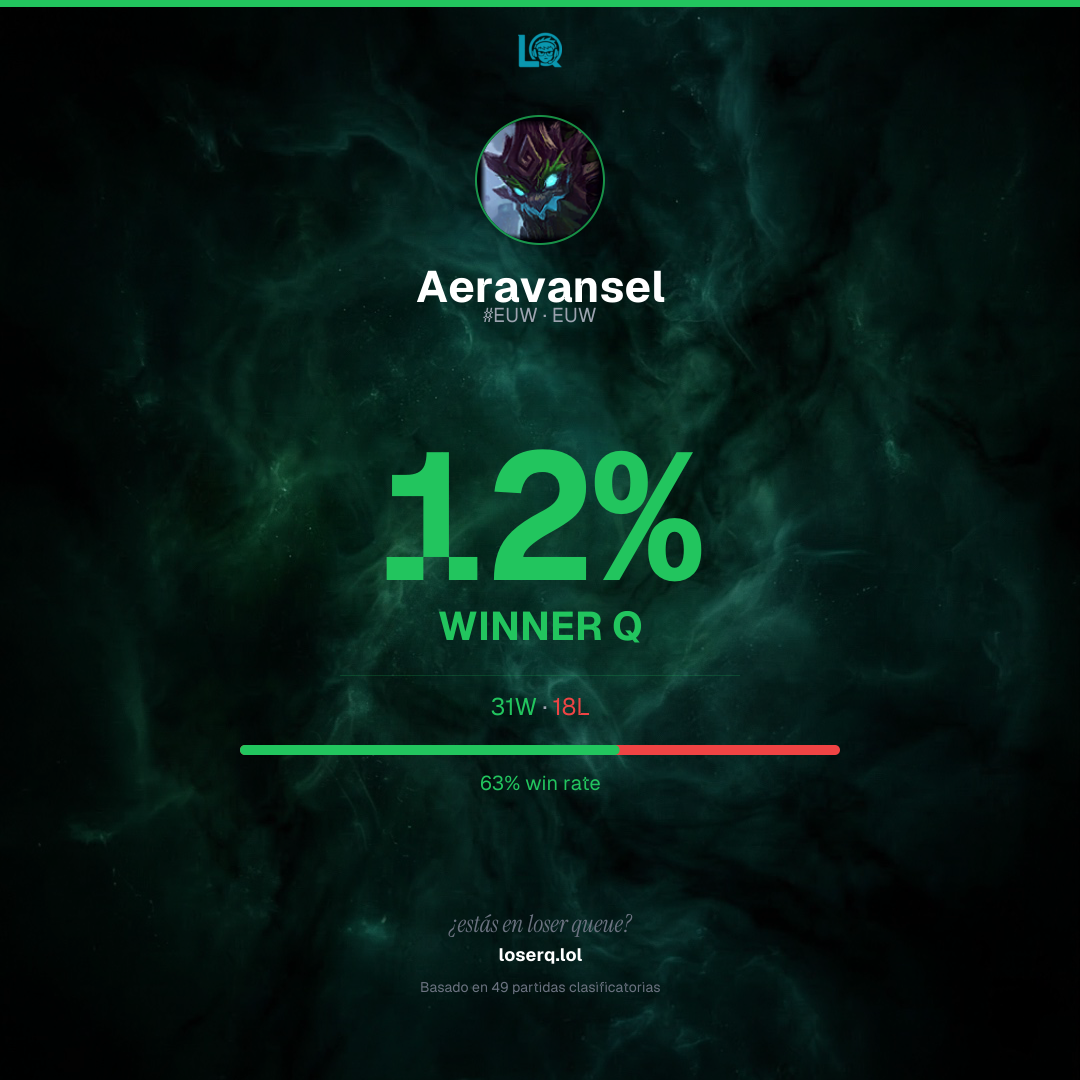 31 victorias, 18 derrotas — 63% de win rate. Un buen desempeño.