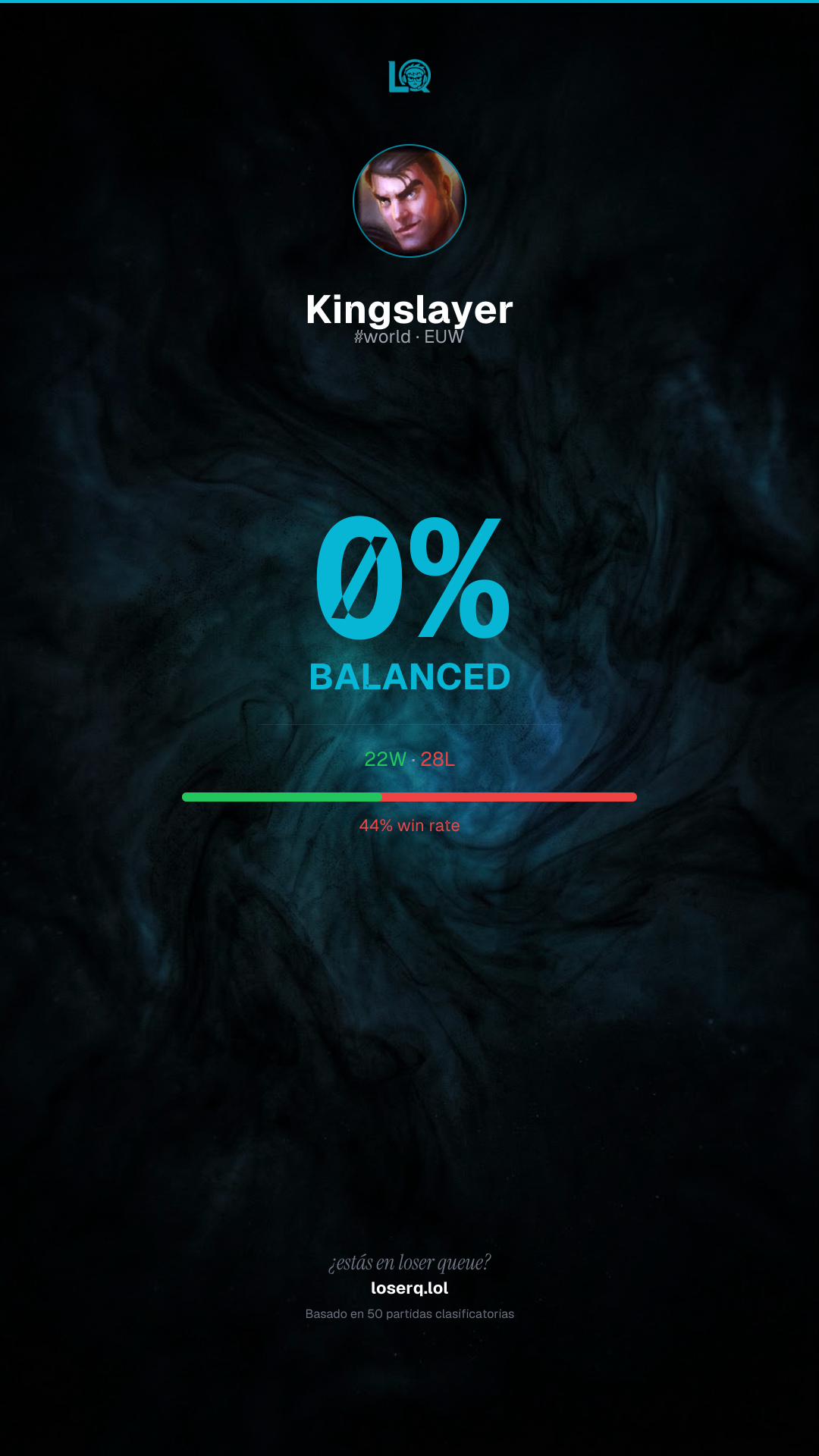 22 victorias, 28 derrotas — 44% de win rate. Ha sido una racha difícil.