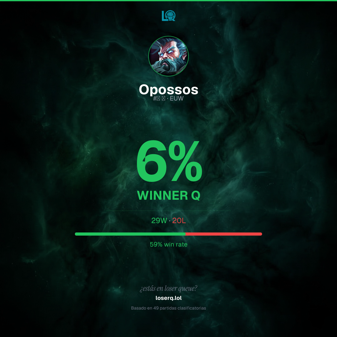 29 victorias, 20 derrotas — 59% de win rate. Un buen desempeño.