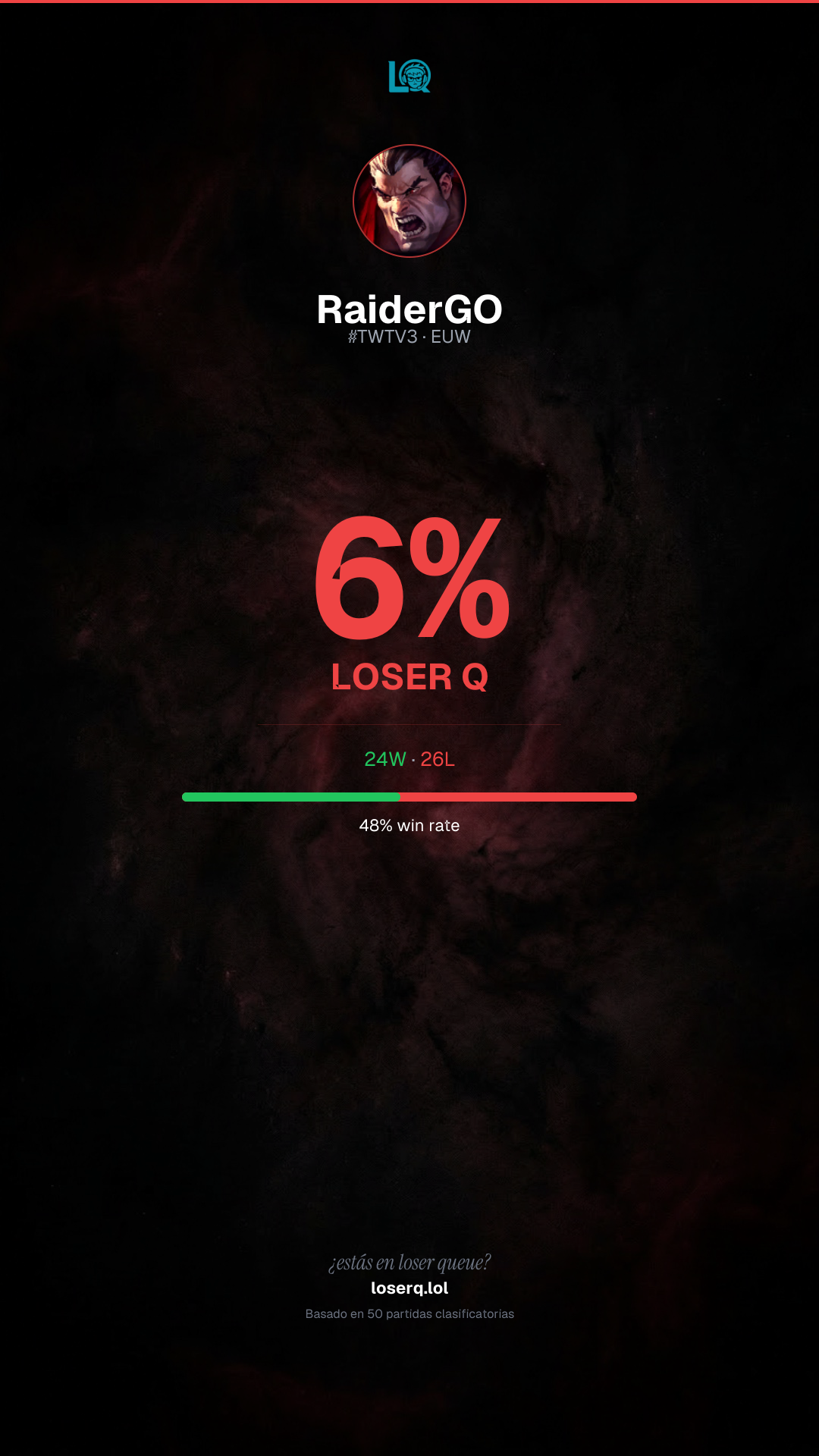 Estás 6% en Loser Q — rétalos a revisar el suyo