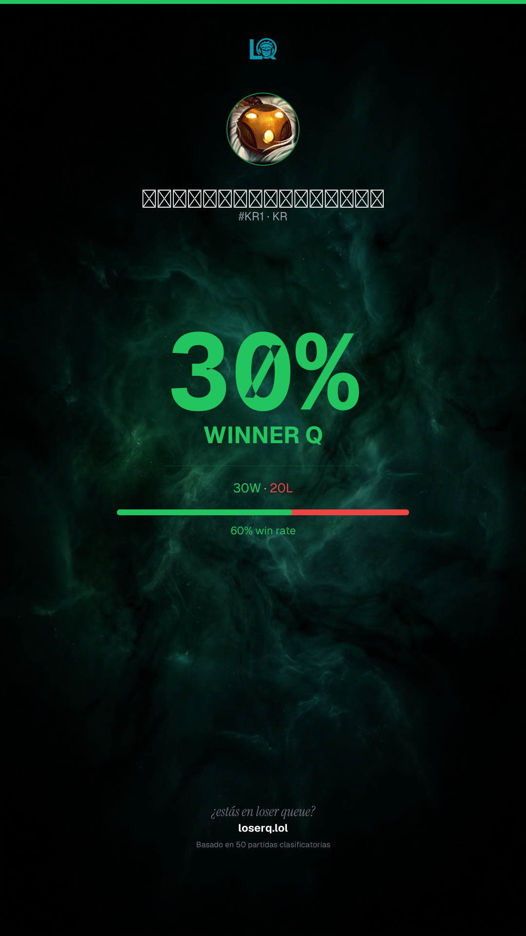 30 victorias, 20 derrotas — 60% de win rate. Un buen desempeño.